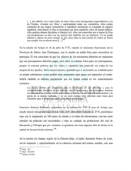 […] uno debería ver a estos indios de éstas villas como desesperados especialmente a los de Pónidas, viviendo por libres y quebrantando todas sus costumbres, ellos cuidan solamente de sus juegos, borracheras, e impúdicas insolencias en compañía de algunos españoles. Sería bueno si ellos se mezclaran con otros españoles -estos de buenos hábitos- ellos podrían obtener disciplina y libertad civil, ellos son removidos por el temor de Dios son irrespetuosos no sólo con sus justicia sino también con sus ministros. Yo no puedo admirar a alguno de estos, porque en mis cinco años en esta misión los indios ya tienen 106 que cumplir con su tributo anual […]. En la misión de Arizpe el 14 de julio de 1773, reporta el misionero franciscano de la Provincia de Jalisco Juan Domínguez, que la misión no estaba lista para convertirse en parroquia. Él era consciente de que los salarios de los misioneros deberían ser impuestos que sus parroquianos deberían pagar, pero ellos no estaban listos para ser parroquianos, porque la extrema pobreza que los indios y españoles han padecido era culpa de los ataques de los apaches. De la misma manera, apuntaba que si un hombre no sembraba para su propia subsistencia como podían estar preparados para pagar sus impuestos al curato. Infería también la mínima preparación que los ópatas tenían en los conocimientos cristianos Los ópatas debían ser preparados para la obediencia de sus ministros y para la correspondiente disciplina de sus fracasos, aún su ignorancia y sus costumbres deberían ser reducidas, las ofensas a Dios aminoradas, el servicio de su majestad incrementado y la gloria de la misión realizada, y en un corto tiempo ellos deberían estar listos para 107 contribuir para la misión que podrá convertirse en parroquia. Francisco Antonio Barbastro, argumenta en su informe de 1793 el caso de Arizpe, que siendo misión fue secularizada en una visita del Comandante General en 1776, poniéndose cura con la asignación de 200 pesos de sínodo y el cobro de obvenciones, con tan corto subsidio ha padecido mil necesidades y bajo su cuidado las poblaciones del real de Bacanuchi y Chinapa que por visitarlos se quedaron sin misa algunos días de fiesta en la capital de las provincias internas. 108 En la misión de Onapas región de la Pimería Baja, el padre Bernardo Ponce de León, servía temporal y espiritualmente en la cabecera misional del mismo nombre, con una 106 Ibíd., 182. 107 Ibíd., 183-187 108 Gómez, 65-66.