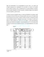 indios eran administrados en sus temporalidades por jueces reales y sus cuentas eran revisadas anualmente por el gobernador de las provincias. Los indios en los pueblos mixtos recibían su doctrina y misa, su españolización era avanzada, hablaban el castellano, pero aún seguían trabajando sus tierras comunales y realizaban trabajos de otra índole al servicio de españoles y gente de razón. La figura 8 muestra la cantidad de indios y no indios que habitaban en los pueblos, siendo la excepción los Seris del Pitic que no formaron pueblos mixtos, pero en los demás todos tuvieron presencia de otras clases, en algunos el número de indios era rebasado por mucho como en Opodepe, Bacoachí y Sahuaripa. Por otra parte, es de tomarse en cuenta que el número de indios disminuyó de 1798 un 1% con respecto a 1802 aproximadamente, mientras que la población de españoles y castas aumentaron un 29.1% en los mismos años arrojando un incremento de la población mixta de 11.4% aproximadamente en los cuatro años. 115 Figura 8. Población en Pimería Baja y Opatería en 1802 116 Misiones Indios Españoles/castas Total Tecoripa 131 150 281 Cumuripa 320 294 614 San José de 198 165 363 Pimas Seris del Pitic 163 163 Opodepe 334 543 877 Cucurpe 376 371 747 Bacoachi 60 534 594 Basarac 336 108 444 Bacadéhuachi 268 115 383 Guasabas 242 73 315 Taraichi 127 27 154 Sahuaripa 89 668 757 Arivechi 587 1299 Totales 1802 3356 3626 6985 Existían en 3466 2809 6270 1798 115 Medina, 130. 116 Ibíd.
