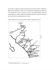 Por otra parte, la (figura 9), muestra las misiones de la provincia de Sonora y Sinaloa que habían sido secularizadas, de 1768 a 1791. En total fueron secularizadas seis misiones en 1791, mientras que el resto se hicieron en 1768, o poco tiempo después. Arizpe fue secularizada por ser ciudad y capital de la Comandancia general de las provincias internas por lo que el proceso de secularización así lo exigía. 117 Figura 9. Misiones de las provincias de Sonora y Sinaloa secularizadas hasta 1791. 117 De los Reyes, Relación hecha…, 1-31. De la Torre, 322.