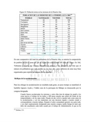 Figura 10. Población mixta en las misiones de la Pimería Alta. 121 POBLACION DE LAS MISIONES DE LA PIMERÍA ALTA 1801 PUEBLO NATURALES VECINOS TOTAL Tumacácori 66 40 106 Cocóspera 68 30 98 San Ignacio 46 59 105 Magdalena 65 09 74 Imuris - 100 100 San Lorenzo 45 6 51 Santa Ana 98 13 111 Sáric 28 8 36 Tubutama 34 129 163 Santa Teresa 19 - 19 Átil 63 150 213 San Javier del Bac 119 39 158 Tucson 231 - 231 Caborca 204 72 276 Pitiqui 94 9 103 Visanic 110 25 135 total 1 290 689 1 979 En este comparativo del total de pobladores de la Pimería Alta, es notoria la composición de pueblos mixtos a pesar de que la región era considerada una zona de riesgo. En Átil, Tubutama e Imuris, los vecinos rebasaban en número a los naturales. En vista que el número de pobladores por cada pueblo no era muy alto, estos debieron de estar muy bien organizados para repeler los ataques de los apaches. Reflejos de la secularización. Para los clérigos la secularización no resultaba nada grato, en poco tiempo se manifestó el bachiller Ignacio Ayala y Valdés cura de la parroquia de Mátape en desacuerdo por la congrua designada. Cuando fueron secularizadas las misiones y entre ellas ésta de mátape les quedó a los curas nuevos el trabajo de los indios y 400 pesos anuales que salían del fondo de las temporalidades o de las cajas reales. Pasado un año volvió a quedar todo como antes de la secularización, y así nos mantenían con una decencia regular a nuestro estado y correspondiente a nuestro trabajo. Después el señor comandante general, nos quito todo, y nos dejó suspicazmente designando para nuestra congrua media fanega de maíz que debe dar anualmente cada indio casado por el trabajo de Administrarlos, la que no he 121 Medina, 134.