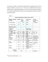 Con respecto a la figura 12, la tendencia de disminución de la población pima de 1768 es bastante manifiesta, al grado que en 16 años bajo la administración franciscana la población pima se redujo aproximadamente a un 46.5%, cifras que marcaban un deterioro en la estructura poblacional de las misiones, ante la disminución de los hijos de misión en los pueblos de indios. Figura 13. 148 Padrón de población de la Pimería Alta en 1784. Misiones y pueblos Casados todas Grupo étnico Familias de visita edades y Idioma agregadas a la sexos misión S. Javier del Bac 38 93 Pima 3 (mulatos) S. José de Tucsón 30 82 Pima Guevavi(no existe) Sonoitac (no existe) Tumacacori y Pima. Pocos Calabazas 21 53 hablan español Suamca (no existe) Cocóspera 15 48 Pima S. Ignacio Caborica 40 103 Pima Imuris 3 11 Pima Magdalena 9 28 Pima Ati 20 37 Pima 28 Españoles, Oquitoa 8 29 Pima Mulatos y otros Tubutama 7 19 Pima y entienden 26 Españoles, y S. Teresa 11 34 español otras castas Pima Poco 8 (mulatos) Sáric 17 48 español Caborca 22 71 Pima y entienden 6 Mulatos y español otros 48 123 Pima y entienden Pitiquin español 51 138 Pima entienden Bisanig español 340 917 Subtotales Totales 1257 71 familias 148 De los Reyes, “Relación hecha”…, 22-25.