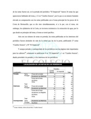de las notas fueron así, en la portada del periódico “El Imparcial” fueron 26 notas las que aparecieron hablando del tema, y 12 en “Cambio Sonora”, por lo que es un número bastante elevado en comparación con las notas publicadas con el tema principal de los pozos de la Costa de Hermosillo, que se dio sino simultáneamente, sí a la par, con el tema, sin embargo, los ejidatarios de la Costa, no tuvieron resistencia a la extracción de agua, por lo que desde un principio del tema, el tema se tornó pacífico. Aún con ese número de notas en portada, las notas publicadas en los interiores del periódico fueron alrededor de más de la mitad que las de la porta, publicando 27 notas “Cambio Sonora” y 49 “El Imparcial”. Y aunque portada y contraportada de los periódicos con las páginas más importantes 94 para los editores , solamente se publicaron 4 en “El Imparcial” y 1 en “Cambio Sonora”, dando prioridad a la portada y a los interiores de los periódicos. LOCALIZACIÓN DE LAS NOTAS EN LOS PERIÓDICOS Periódico Cambio Localización Sonora El Imparcial Total Portada Tema Pozos de la ciudad 0 1 1 Principal Acueducto Las Malvinas 12 26 38 Pozos de la Costa 0 2 2 Acuíferos 0 5 5 Otros 6 10 16 Total 18 44 62 Interiores Tema Pozos de la ciudad 0 4 4 Principal Acueducto Las Malvinas 27 49 76 Pozos de la Costa 5 3 8 Acueducto Los Bagotes 1 0 1 Acuíferos 2 2 4 Otros 13 22 35 Total 48 80 128 Contraportada Tema Acueducto Las Malvinas 1 4 5 Principal Acuíferos 1 0 1 94 Ivonne Andrade, editora del periódico “Cambio Sonora”.