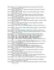 Chavez Mada, C. (n.d.). "Empuja Aguahh negociación con agricultores de la Costa". Periódico Cambio Sonora . Chavez Mada, C. (2005, Marzo 17). "Esperan venta de agua de agricultores". Periódico Cambio Sonora , p. 6B. Chavez Mada, C. (2005, Abril 13). "Interesa a UU solución a falta de agua". Periódico Cambio Sonora , p. 2B. Chavez Mada, C. (s.f.). "Llama a cerrar filas por el agua". Periódico Cambio Sonora . Chavez Mada, C. (20 de julio de 2005). "Llama a cerrar filas por el agua". Periódico Cambio Sonora , pág. 1B. Chavez Mada, C. (06 de Mayo de 2005). "Mantendrán vigilancia en obra "Las Malvinas". Periódico Cambio Sonora , pág. 1B. Chavez Mada, C. (2005, marzo 02). "Niega se realicen tandeos de agua". Periódico Cambio Sonora , p. 2B. Chavez Mada, C. (11 de Noviembre de 2005). "No cerrará Aguahh Pozo con flúor". Periódico Cambio Sonora , pág. 1B. Chavez Mada, C. (2005, Marzo 15). "Oficializan tandeos". Periódico Cambio Sonora , p. 1A. Chavez Mada, C. (2005, enero 22). "Piden Cambiar nombre a Aguahh". Periódico Cambio Sonora , p. 6B. Chavez Mada, C. (s.f.). "Piden ejidatarios se cumpla la ley". Periódico Cambio Sonora . Chavez Mada, C. (2005, Marzo 18). "Piden en El Tazajal presenecia policiaca". Periódico Cambio Sonora , p. 2B. Chavez Mada, C. (s.f.). "Ponen a prueba Las Malvinas". Periódico Cambio Sonora . Chavez Mada, C. (s.f.). "Prevé buen acuerdo en Aguahh". Periódico Cambio Sonora . Chavez Mada, C. (n.d.). "Prevén tandeo de agua". Periódico Cambio Sonora . Chavez Mada, C. (s.f.). "Protestan ejidatarios". Periódico Cambio Sonora . Chavez Mada, C. (2005, Marzo 10). "Protestan ejidatarios". Periódico Cambio Sonora , p. 1B. Chavez Mada, C. (26 de octubre de 2005). "Reinician O bras en Las Malvinas". Periódico Cambio Sonora , pág. 1B. Chavez Mada, C. (14 de septiembre de 2005). "Retrasan entrega de obra Las Malvinas". Periódico Cambio Sonora , pág. 2B. Chavez Mada, C. (n.d.). "Salen regañados ejidatarios". Periódico Cambio Sonora . Chavez Mada, C. (2005, Junio 14). "Salen regañados ejidatarios". Periódico Cambio Sonora , p. 1B. Chavez Mada, C. (26 de octubre de 2005). "Se ampara contra acueducto". Periódico Cambio Sonora , pág. 3B. Chavez Mada, C. (09 de Noviembre de 2005). "Se pasa el nivel de flúor en agua". Periódico Cambio Sonora , pág. 1B. Chavez Mada, C. (2005, enero 27). "Se uniran los 3 niveles de gobierno para buscar una solucón en El Zacatón". Chavez Mada, Carmen , p. 3A. Chavez Mada, C. (n.d.). "Siguen en pie de lucha los ejidatarios". Periódico Cambio Sonora . Chavez Mada, C. (25 de octubre de 2005). "Siguen obras de acueducto Las Malvinas". Periódico Cambio Sonora , pág. 2B. Chavez Mada, C. (2005, enero 25). "Tandean opción de abasto de agua". Periódico Cambio Sonora , p. 1B.