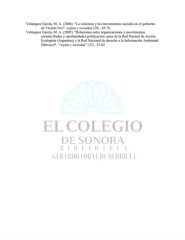 Velázquez García, M. A. (2004). "La violencia y los movimientos sociales en el gobierno de Vicente Fox". region y sociedad (29) , 45-70. Velázquez García, M. A. (2005). "Relaciones entre organizaciones y movimientos sociales.Redes y oportunidades politicas:los casos de la Red Nacinal de Acción Ecologista (Argentina) y la Red Nacional de derecho a la Información Ambiental (México)*. "región y sociedad" (33) , 33-62.