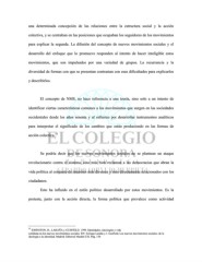 una determinada concepción de las relaciones entre la estructura social y la acción colectiva, y se centraban en las posiciones que ocupaban los seguidores de los movimientos para explicar la segunda. La difusión del concepto de nuevos movimientos sociales y el desarrollo del enfoque que lo promueve responden al intento de hacer inteligible estos movimientos, que son impulsados por una variedad de grupos. La recurrencia y la diversidad de formas con que se presentan contrastan con esas dificultades para explicarlos y describirlos. El concepto de NMS, no hace referencia a una teoría, sino solo a un intento de identificar ciertas características comunes a los movimientos que surgen en las sociedades occidentales desde los años sesenta y al esfuerzo por desarrollar instrumentos analíticos para interpretar el significado de los cambios que están produciendo en las formas de 15 acción colectiva. Se podría decir que los nuevos movimientos sociales no se plantean un ataque revolucionario contra el sistema, sino más bien reclaman a las democracias que abran la vida política al conjunto de intereses más diversos y más directamente relacionados con los ciudadanos. Esto ha influido en el estilo político desarrollado por estos movimientos. Es la protesta, junto con la acción directa, la forma política que prevalece como actividad 15 JOHNSTON, H., LARAÑA y GUSFIELD. 1999. Identidades, ideologías y vida cotidiana en los nuevos movimientos sociales. EN: Enrique Laraña y J. Gusfield, Los nuevos movimientos sociales: de la ideología a la identidad. Madrid: Editorial Madrid CIS. Pág. 130
