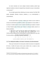 Las macro estructuras casi como cualquier estructura semántica, pueden luego organizarse mediante un número de categorías fijas, incluyendo las causas, los antecedentes 32 o consecuencias. En este simple esquema hemos indicado que las macro oraciones (Van Dijk, 2001) pueden desempeñar diferentes funciones semánticas, ya sea intencionalmente o extensionalmente. El lector puede utilizar la estructura temática para construir un nuevo modelo de este tipo de acontecimientos periodísticos actuales o para actualizar los viejos modelos. A la inversa, los modelos anteriores sobre la situación informática (por ejemplo, la situación en Timor Oriental) pueden utilizarse para construir la estructura temática actual de un discurso periodístico. La estructura interna de esta macro organización: está determinada por nuestras creencias sobre las estructuras de los acontecimientos y acciones en general, así como sobre los sucesos políticos en una situación presente en particular. 2.2.7 La realización temática: de la macro estructura a la microestructura. Puesto que la derivación de los temas parece simular los procesos de comprensión del lector, el análisis del proceso inverso parece simular como se expresa un tema determinado, detallado o elaborado por el hablante o escritor. 32 SCHULZ, W. 1976. Die Konstruktion von Realitât in den Nachrichtenmedien. Freiburg. Karls Alber. EN: VAN DIJK, T. 2001. La noticia como discurso: Comprensión, estructura y producción de la información. Paidós Comunicación. Barcelona.