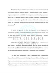 Probablemente el agua sea el único recurso natural que atañe a todos los aspectos de la civilización, desde el desarrollo agrícola e industrial hasta los valores culturales y religiosos arraigados en la sociedad. La vida en el planeta comenzó con el agua y ese nexo entre la vida y el agua sigue intacto. De hecho, a lo largo de la historia de la humanidad la necesidad y la demanda de agua han sido un motor del desarrollo social, económico y cultural. No es exagerado afirmar que si hay una crisis del agua también habrá una crisis 50 del desarrollo. La gestión del agua cada vez tiene más importancia en todo el planeta. Los suministros de agua dulce en el mundo son limitados y para evitar una crisis mundial, todos los países deben conservar este valioso recurso, reducir la contaminación y regular el 51 suministro y la demanda. 2,200 millones de personas, es decir casi 1 de cada 5 personas, no tienen acceso al agua potable y, la mitad de la población mundial, carece de sistemas adecuados de depuración de agua. Tanto si vives como si no en un país con estos problemas, la escasez 52 del agua es una situación que nos atañe a todos y del que todos somos responsables. "Por ahora, yo no diría que se va a agotar el agua potable dulce", comenta Dieter Kraemer, Director del Departamento de Hidrología y Recursos Hídricos de la Organización 50 http://www.civila.com/Efemerides/agua.asp, mensaje de Koichiro Matsuura, representante de la UNESCO en el Día Mundial del Agua 51 http://www.civila.com/Efemerides/agua.asp, mensaje expresado en el Día Mundial del Agua por Nidia Coniella, representante de Greenpeace 52 http://www.wateryear2003.org/es/ev.php-URL_ID=1610&URL_DO=DO_TOPIC&URL_SECTION=201.html, 2003 año Internacional del Agua Dulce