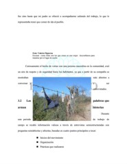 fue sino hasta que mi padre se ofreció a acompañarme saliendo del trabajo, lo que le representaba tener que comer de ida al pueblo. Foto: Valeria Figueroa Escenas como éstas son las que crean en una mujer desconfianza para transitar por el lugar de noche. Curiosamente el hecho de verme con una persona masculina en la comunidad, creó un aire de respeto y de seguridad hacia los habitantes, ya que a partir de su compañía se mostraban más abiertos a conversar y a ser entrevistados. 3.2 Las palabras que arman historias Durante este periodo de trabajo de campo se recabó información valiosa a través de entrevistas semiestructuradas con preguntas semiabiertas y abiertas, basadas en cuatro puntos principales a tocar: Inicios del movimiento Organización Prácticas que realizaron