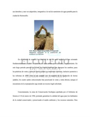 sus derechos y una vez adquiridos, integrarlos a la red de suministro de agua potable para la ciudad de Hermosillo. Foto: Banco Digital del periódico El Imparcial Maquinaria trabajando en la construcción del acueducto Las Malvinas. En el periodo de estudio, los cambios de uso de suelo agrícola se han orientado fundamentalmente a cubrir la demanda de suelo urbano para vivienda y equipamiento. En este largo periodo parecen no existir los costos históricos que marquen los cambios, pues las prácticas de venta y renta de tierras ejidales se mantienen similares, inclusive posterior a las reformas de 1993. Esto es sin cumplir con el requisito de la regulación de tierras ejidales, los cuatro ejidos seleccionados han practicado la venta y renta directa; aunque el mecanismo de la expropiación siga siendo un recurso legal solicitado. Concretamente, la zona de Conservación Ecológica aprobada por el Gobierno de Sonora el 10 de marzo de 1994, pretende garantizar la calidad del agua para los habitantes de la ciudad conservando y preservando el medio ambiente y los recursos naturales. Para