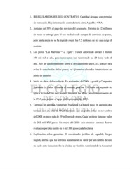 1. IRREGULARIDADES DEL CONTRATO1: Cantidad de agua con permiso de extracción. Hay información contradictoria entre Aguahh y CNA. 2. Anticipo del 50% al pago del servicio del acueducto. Un total de 12 millones de pesos se entregó para el uso exclusivo de compra de derechos de pozos, pero hasta ahora no se ha logrado reunir los 7.5 millones de m3 que exige el contrato 3. Los pozos “Las Malvinas”“La Tijera”. Tienen autorizado extraer 1 millón 350 mil m3 al año, pero nunca antes han funcionado las 24 horas todo el año. Hay un cuestionamiento sobre el procedimiento que CNA realizó para evitar la cancelación de los pozos; los ejidatarios afectados interpusieron un juicio de amparo. 4. Inicio de obras del acueducto. En noviembre del 2004 Aguahh y Campestre Hacienda La Labor firmaron el contrato para dar 250 litros por segundo de agua a la ciudad; un mes después iniciaron las obras, pero la autorización de la CNA para extraer el agua se dio en marzo del 2005. 5. Terrenos en garantía. Campestre Hacienda La Labor puso en garantía dos terrenos con un total de 99.35 hectáreas que un perito valuó en noviembre del 2004 en poco más de 29 millones de pesos. Cada hectárea tiene un valor de 292 mil 875 pesos. En mayo del 2002 esos mismos terrenos fueron evaluados por otro perito en 6 mil 300 pesos cada hectárea. 6. Explicación sobre garantías. El coordinador jurídico de Aguahh, Sergio Sugich, afirmó que los terrenos aumentaron su valor por un cambio de uso de suelo ante Semarnat. En la Unidad de Gestión Ambiental de la Semarnat