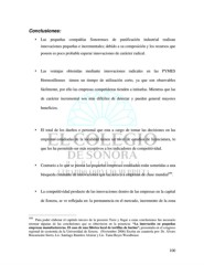Conclusiones: Las pequeñas compañías Sonorenses de panificación industrial realizan innovaciones pequeñas e incrementales; debido a su composición y los recursos que poseen es poco probable esperar innovaciones de carácter radical. Las ventajas obtenidas mediante innovaciones radicales en las PYMES Hermosillenses tienen un tiempo de utilización corto, ya que son observables fácilmente, por ello las empresas competidoras tienden a imitarlas. Mientras que las de carácter incremental son más difíciles de detectar y pueden general mayores beneficios. El total de los dueños o personal que esta a cargo de tomar las decisiones en las empresas estudiadas de la localidad tienen un nivel de estudios de licenciatura, lo que les ha permitido ser más receptivos a los indicadores de competitividad. Contrario a lo que se piensa las pequeñas empresas estudiadas están sometidas a una 109 búsqueda constante de innovaciones que las acerca a empresas de clase mundial . La competitividad producto de las innovaciones dentro de las empresas en la capital de Sonora, se ve reflejada en: la permanencia en el mercado, incremento de la zona 109 Para poder elaborar el capitulo tercero de la presente Tesis y llegar a estas conclusiones fue necesario retomar algunas de las conclusiones que se obtuvieron en la ponencia: “La innovación en pequeñas empresas manufactureras. El caso de una fábrica local de tortillas de harina”, presentada en el congreso regional de economía de la Universidad de Sonora. (Noviembre 2006) Escrita en coautoría por: Dr. Álvaro Bracamonte Sierra, Lic. Santiago Ramírez Alcázar y Lic. Tania Reyes Woodhouse 100