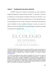 Anexo 3 Configuración del sector industrial. 110 El INEGI utiliza para el manejo de la información que recaba el Sistema de 111 Clasificación Industrial para América del Norte (SCIAN) el cual divide en 20 sectores de actividad en el nivel más general, 95 subsectores, 309 ramas, 631 sub-ramas y, en su nivel más detallado, en 1051 clases de actividad. El sector es el nivel más general; la clase, el más desagregado. El sector se divide en subsectores. Cada subsector está formado por ramas de actividad, las cuales se dividen en sub-ramas. Las clases, por su parte, son desgloses de las sub-ramas (Ibíd, 2002: 22) De manera grafica la clasificación que emplea este sistema luce de la siguiente manera. 110 En México el Instituto Nacional de Geografía e Informática (INEGI) es un órgano desconcentrado de la Secretaría de Hacienda y Crédito Público, con autonomía técnica y administrativa. Su objetivo básico es coordinar los Sistemas Nacionales Estadístico y de Información Geográfica y brindar el servicio público de información estadística y geográfica sobre el territorio, la población y la economía de México. (www.inegi.gob.mx) 111 El SCIAN fue desarrollado para generar estadísticas comparables entre los tres países de América del Norte, en un trabajo conjunto de sus dependencias gubernamentales de estadística: [….] Su objetivo es proporcionar un marco único, consistente y actualizado para la recopilación, análisis y presentación de estadísticas de tipo económico, que refleje la estructura de la economía mexicana. El SCIAN México es la base para la generación, presentación y difusión de todas las estadísticas económicas del INEGI. Su adopción por parte de otras instituciones que también elaboran estadísticas permitirá homologar la información económica que se produce en el país, y con ello contribuir a la de la región de América del Norte. (SCIAN, 2002:11) La versión 2002 es la actualmente esta rigiendo al INEGI. 106