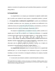 5 empresa se concentra en las aplicaciones que les permitan obtener ganancias a corto plazo . (Rózga 2002:3) b) Competitividad La competitividad es un concepto que recientemente ha adquirido notable interés pues se percibe como sinónimo de mayor progreso y prosperidad económica y personal. [….] El concepto básico o tradicional de competitividad lo concibe como la habilidad de las unidades económicas para crear estructuras que permitan una modificación de las condiciones técnicas de la producción (producción basada en conocimientos) y esto lleve al incremento del nivel de vida de los participantes. (Bracamonte, 2007:3) El concepto de competitividad es el resultado de diversos cambios ocurridos en la segunda parte del siglo XX en relación con el estudio del crecimiento y la capacidad económica de una región (país) o de una unidad productiva. [….] este concepto comenzó a estudiarse en las escuelas de negocios de Estados Unidos y Europa. Fue rápidamente difundido, haciendo especial énfasis en los aspectos gerenciales y empresariales, esto es, observando cómo las empresas compiten por mercados y recursos con el objetivo de incrementar la cuota de mercado a escala local y mundial. (Ibíd.:4) La competitividad estructural retoma los elementos básicos de la competitividad tradicional pero a su vez hace hincapié en las instituciones de apoyo a la innovación tecnológica, así como la inversión en investigación realizada por las empresas; haciendo énfasis en tres factores claves: 1) La innovación como elemento constitutivo central del desarrollo económico; 5 En la parte final de este capitulo se aborda la innovación en las Pequeñas y Medianas empresas, ahí se expondrá porque este tipo de empresas se concentra generalmente en las innovaciones, dejando a las grandes firmas la invención, investigación y desarrollo. 14
