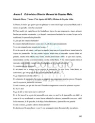 Anexo 8 Entrevista a Director General de Coyotas Malu, Eduardo Flores. (Viernes 17 de Agosto del 2007), Oficinas de Coyotas Malu. S: Bueno, lo único que quiero que me platique es como inició aquí las coyotas Malú; más o menos en qué año, cómo fue creciendo E: Pues nació, mis papás fueron los fundadores, fueron los que empezaron a hacer, primero hacían pan semita, empanadas, y ya después comenzaron haciendo las coyotas, lo que era la tradicional, lo que es la de piloncillo. S: ¿de qué año estamos hablando? E: estamos hablando tenemos como unos 25, 26 años aproximadamente S: ¿y esto empezó como negocio de la casa…? E: en la casa de mis papás y ahí poco a poquito hasta que se le ocurrió a mi mamá sacar la coyota de jamoncillo. Fue ahí cuando coyotas Malú entra al mercado, coyotas Malú no pintaba, estaba Doña María muy fuerte, estaba posicionado 100%, lo que eran coyotas, mencionaban coyotas y se mencionaban coyotas Doña María. Y fue como se pudo entrar al mercado, innovándolo; rompió todo el paradigma de coyotas de piloncillo S: ¿ustedes son los pioneros? E: mi mamá fue la pionera en las coyotas de jamoncillo. Se echa flores Doña María, se echó flores, que esto y que lo otro pero en realidad no fue así. S: ¿y empezaron con otro sabor? E: solamente de jamoncilo, fue como se empezó, nos empezamos a dar a conocer. Después sacó la coyota de jamoncillo con nuez S: más o menos ¿en qué año fue esto? Cuando se empezaron a sacar las primeras coyotas E: 10, 11 años S: ¿y de ahí se innovaron nuevos sabores? E: si. Se innovó la coyota de jamoncillo con nuez, se sacó la de jamoncillo con dátil –a como te lo voy nombrando es como fueron saliendo los sabores- jamoncillo con coco, salió la de manzana, la de guayaba, la de higo, la de chabacano y jamoncillo con granola S: más o menos, ¿cuántos sabores tienen ahorita? E: ahorita son 12 para ofrecer y son 13 con un paquete mixto lleva de todos los sabores. 142