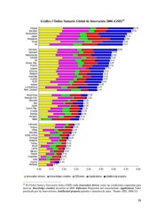 22 Grafico 3 Índice Sumario Global de Innovación 2006 (GSII) 22 El Global Sumary Innovation Index (GSII) mide innovation drivers como las condiciones requeridas para innovar. Knowledge creation inversión en I&D. Difussion Dispersión del conocimiento. Applications Valor producido por las innovaciones. Intellectual property patentes o derechos de autor. Fuente: (EIS, 2006:23) 28