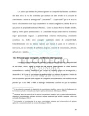 Los países que detentan los primeros puestos en competitividad durante los últimos dos años, son a la vez las economías que cuentan con altos niveles en la creación de 24 26 25 conocimiento a través de investigación y desarrollo . La aplicación que se le da a los nuevos conocimientos es un rasgo característico en estados competitivos; además de ser los que poseen la propiedad intelectual (Patentes). Como se puede observar Estados Unidos, Japón y ciertos países pertenecientes a la Comunidad Europea están entre las economías mejor posicionadas respecto a productividad, comercio internacional, crecimiento económico etc. (todos estos conceptos englobados dentro de competitividad). Coincidentemente son las mismas regiones que marcan la pauta en lo referente a innovación, en sus vertientes de ambientes propicios, creación de conocimiento, difusión, aplicaciones y patentes. 1.6.- Innovar para competir, evidencia internacional. Los estudios sobre la influencia que tiene la innovación en el nivel de competitividad de una firma, sector, región o nación no son nuevos. Generalmente se crean modelos econométricos o análisis estadísticos que cruzan las variables gastos en investigación y desarrollo (I & D) con el crecimiento de productividad o el número de patentes. Prueba de ello es el estudio aplicado a un conjunto de compañías estadounidenses con información del periodo que va de 1965 a 1984; el hallazgo fundamental consistió en que las unidades 24 La investigación comprende la adquisición de conocimientos científicos nuevos sobre los fundamentos de los fenómenos y hechos orientados a un objetivo práctico determinado. (Domínguez, 2006:2). 25 Desarrollo abarca la utilización de los nuevos conocimientos científicos para la producción de materiales, dispositivos, procedimientos, sistemas, servicios o mejoras sustanciales que faciliten o agreguen valor a una actividad. (Domínguez, 2006:2). 26 La invención es la producción de un nuevo conocimiento, mientras que la innovación es la primera aplicación o comercialización de un invento (Domínguez, 2006:2). 30