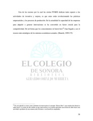 Una de las razones por la cual las ciertas PYMES dedican tanto espacio a las actividades de inventiva y mejora, es que estas están revolucionando las prácticas empresariales y los procesos de producción. En la actualidad la capacidad de las empresas para adquirir o generar innovaciones se ha convertido en factor crucial para la 33 competitividad. De tal forma que los conocimientos (el know-how ) han llegado a ser el recurso más estratégico de los entornos económicos actuales. (Bianchi, 1999:175) 33 En este párrafo se tomo como sinónimo de innovación el concepto “Know How” cuya traducción literal es saber hacer. La razón de ello estriba en que innovación es en esencia descubrir una forma de saber hacer una actividad o producto de una manera más eficiente o con beneficios ampliados. 38