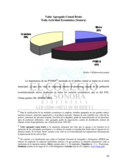 Valor Agregado Censal Bruto Toda Actividad Económica (Sonora) Grafico 8 (Elaboración propia) 56 La importancia de las PYMES mostrada en el ámbito estatal se repite en el nivel municipal; ya que este tipo de empresas ostenta el porcentaje mayor de la población económicamente activa empleada en todos los sectores económicos, que es del 43%. (Véase grafico 20). (INEGI, 2004) 54 Para la clasificación de las unidades económicas se emplean variables agrupadas en tres grandes rubros: insumos-recursos, estructura organizativa y el producto-mercado. Algunas de esas variables son: valor de los activos, estructura del personal ocupado, inversión por trabajador, grado de especialización en las funciones, tipos de productos elaborados, valor agregado, poder de negociación, canales de distribución, número de clientes, sector al que pertenece, etc. (García de León, 1993:29). 55 Valor agregado censa bruto es la expresión monetaria del valor que se agrega a los insumos en la ejecución de las actividades económicas y se obtiene de restarle a la producción bruta total el importe de los insumos totales. Se le llama “bruto” porque a este valor no se le han deducido las asignaciones efectuadas por la depreciación de los activos fijos. 56 De acuerdo a la clasificación que realiza el Instituto Nacional de Geografía e Informativa (INEGI) por número de empleado en empresas industriales (misma a la que pertenece la industria alimentaría), estas se conforman de la siguiente manera. Micro cuentan entre 1 y 10 empleados. Pequeñas de 11 y 50 personas. Medianas oscilan en un rango de 51 a 250 trabajadores. Grandes más de 251 empleos. (www.inegi.gob) 62