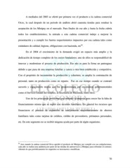A mediados del 2003 se ofertó por primera vez el producto a la cadena comercial Oxxo, la cual después de un periodo de análisis abrió cuarenta tiendas para sondear la aceptación de los Minipay en el mercado. Para finales de ese año y hasta la fecha cubría todos los establecimientos; la entrada a esta cadena comercial indujo a mejorar la presentación y a cumplir los fuertes requerimientos impuestos por esa cadena tales como 64 estándares de calidad, higiene, obligaciones con hacienda, etc . En el 2004 el crecimiento de la demanda exigió un espacio más amplio y la dedicación de tiempo completo de los socios fundadores; uno de ellos se responsabilizó de innovar y modernizar el proceso de producción. Ese año es para la firma un parteaguas debido a que pasa de una empresa familiar y casera a otra bien establecida y competitiva. Con el propósito de incrementar la producción y cobertura, se amplia la contratación de personal, tanto en producción como en reparto. Fue en ese tiempo cuando se contrató asesoría y capacitación misma que fue proporcionada por organismos gubernamentales como el Servicio Estatal del Empleo, la Secretaria de Hacienda, entre otros. Uno de los principales problemas que enfrentó la empresa para crecer fue la falta de financiamiento mismo que se suplió con recursos familiares. En general los recursos que financiaron el proceso de expansión se conformaron mayoritariamente de ahorros familiares tales como tarjetas de créditos, crédito de proveedores, préstamos personales, etc. En este segmento no se recibió ninguna ayuda por parte de algún organismo. 64 Aun cuando la cadena comercial Oxxo aprobó el producto de Minipay por cumplir con sus estipulaciones, cada año se realiza una auditoria por parte de las tiendas de autoservicio a Minipay para refrendar el contrato. Además de que periódicamente los requisitos se incrementa o modifican. 70