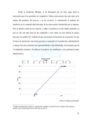 Desde su fundación, Minipay, se ha distinguido por un claro sesgo hacia la innovación que le ha permitido ser competitiva. Dichas innovaciones han sido tanto en la mejora del producto, del proceso y en los servicios. A continuación se analizan los beneficios en la competitividad derivadas de las innovaciones introducidas por la empresa. Esto se aborda a partir de tres aspectos, a saber: La primera es la del empleo generado, ya que en solo seis años pasa de dos empleados a una contar con una nómina de quince personas (ver gráfica 25). Además de que reestructuró las funciones de su personal. Ya que al inicio de operaciones una misma persona se encargaba de la producción, administración y entrega. En estos momentos las responsabilidades están delimitadas, de tal manera que de 15 empleados existentes, 10 elaboran el producto, tres distribuyen y dos gestionan la parte administrativa. Producción Semanal (Mini Pay) 5000 5,000 4000 Unidades 3000 2000 1000 0 50 2001 2007 68 Gráfica 26: Elaboración Propia 68 Gráfica 26 elaborada con base en información recabada con directivos de la empresa. Para mayores detalles véase la transcripción de la entrevista en anexo 8 73