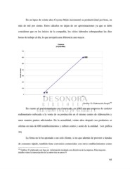 En un lapso de veinte años Coyotas Malu incrementó su productividad por hora, en más de mil por ciento. Estos cálculos no dejan de ser aproximaciones ya que se debe considerar que en los inicios de la compañía, los ciclos laborales sobrepasaban las diez horas de trabajo al día, lo que arrojaría una diferencia aun mayor. Cobertura (Coyotas Malu) 700 600 600 500 Puntos de venta 400 300 200 100 30 0 1985 2007 Grafico 32: Elaboración Propia 102 En cuanto al pocisionamiento en el mercado, en 1985 era una empresa de carácter rudimentario enfocada a la venta de su producción en el mismo centro de elaboración y unos cuantos puntos adicionales. En la actualidad, veinte años después sus productos se ofertan en más de 600 establecimientos y cubren centro y norte de la entidad. (ver gráfica 32) La firma no le ha apostado a un solo cliente, si no que además de proveer a tiendas de consumo rápido, también tiene convenios comerciales con otros establecimientos como 102 Gráfica 32 elaborado con base en información recabada con directivos de la empresa. Para mayores detalles véase la transcripción de la entrevista en anexo 9 95