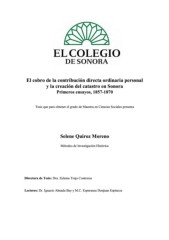 (O FREUR GH OD FRQWULEXFLyQ GLUHFWD RUGLQDULD SHUVRQDO \ OD FUHDFLyQ GHO FDWDVWUR HQ 6RQRUD 3ULPHURV HQVD\RV 7HVLV TXH SDUD REWHQHU HO JUDGR GH 0DHVWUD HQ &LHQFLDV 6RFLDOHV SUHVHQWD 6HOHQH 4XLUR] 0RUHQR 0pWRGRV GH ,QYHVWLJDFLyQ +LVWyULFD 'LUHFWRUD GH 7HVLV 'UD =XOHPD 7UHMR &RQWUHUDV /HFWRUHV 'U ,JQDFLR $OPDGD %D\ \ 0 & (VSHUDQ]D 'RQMXDQ (VSLQR]D