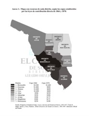 Anexo 1.- Mapa con recursos de cada distrito, según los cupos establecidos por las leyes de contribución directa de 1866 y 1870: DISTRITO DISTRITO DE DE ALTAR DISTRITO ARIZPE DE MAGDALENA DISTRITO DE MOCTEZUMA DISTRITO DE URES DISTRITO DE DISTRITO HERMOSILLO DE SAHUARIPA DISTRITO DE GUAYMAS DISTRITO DE ALAMOS Distrito Cupo 1866 Cupo 1870 1.- Hermosillo $2,300 $1,600 2.- Guaymas $1,000 $800 3.- Álamos $1,000 $600 3.- Ures $1,000 $600 4.- Altar $500 $250 5.- Sahuaripa $350 $200 6.- Arizpe $300 $175 6.- Magdalena $300 $175 7.- Moctezuma $250 $100 Fuente: Pesqueira, Fernando (Comp.). Leyes y decretos del Estado de Sonora, 1853-1877. Tomo II. Mapa: García y Alva, Federico. Album directorio del Estado de Sonora. 1905-1907. Directorio Oficial del Estado.