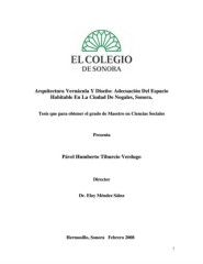 Arquitectura Vernácula Y Diseño: Adecuación Del Espacio Habitable En La Ciudad De Nogales, Sonora. Tesis que para obtener el grado de Maestro en Ciencias Sociales Presenta Pável Humberto Tiburcio Verdugo Director Dr. Eloy Méndez Sáinz Hermosillo, Sonora Febrero 2008 1