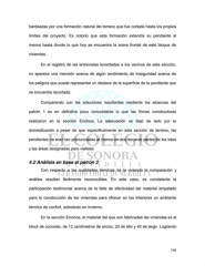 bardeadas por una formación natural del terreno que fue cortada hasta los propios límites del proyecto. Es notorio que esta formación extendía su pendiente al menos hasta donde lo que hoy se encuentra la acera frontal de este bloque de viviendas. En el registro de las entrevistas levantadas a los vecinos de esta sección, no aparece una mención acerca de algún sentimiento de inseguridad acerca de los peligros que puede representar un deslave de la superficie de la pendiente que se encuentra recortada. Comparando con las soluciones resultantes mediante los alcances del patrón 1 es en definitiva poco concordante lo que las firmas constructoras realizaron en la sección Encinos. La adecuación se dejó de lado por la domesticación a pesar de que específicamente en esta sección de terreno, las pendientes no eran tan pronunciadas al menos en dos terceras partes de los lotes y las áreas designadas para vialidad. 4.2 Análisis en base al patrón 2 Con respecto a las cualidades térmicas de la vivienda la comparación y análisis resultan fácilmente reconocibles. En este caso, es consistente la participación testimonial acerca de la falta de efectividad del material empelado para la construcción de las viviendas para ofrecer en los interiores un ambiente térmico de confort, sobretodo en invierno. En la sección Encinos, el material del que son fabricadas las viviendas es el block de concreto, de 12 centímetros de ancho, 20 de alto y 40 de largo. Logrando 106