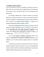 4.5 Análisis en base al patrón 5 Otro de los elementos que suelen ser confundidos como piezas de ornato es el pórtico. Este, como ya se menciono ejerce múltiples funciones en la conformación de la vivienda. Tal vez la mas difícil de medir es la de su funcionamiento como espacio social. Las entrevistas realizadas tanto a usuarios de vivienda con este patrón aplicado como a dueños de casas que no cuentan con este elemento (siendo el proyecto de las Bellotas uno de ellos) inciden en que existe en ellos la inquietud de tener un espacio en los umbrales exteriores inmediatos a la vivienda, con el propósito de entablar lazos sociales con amigos y vecinos. Estas relaciones indudablemente tienen incidencia en la calidad de vida del residente en cualquier asentamiento humano. La interacción y comunicación de los actores conformadores de una sociedad regeneran y fortalecen el tejido primario de la sociedad misma enriqueciendo los valores de inclusión y de pluralidad cultural. Es así como se presenta la necesidad de espacios de reunión en una ciudad que históricamente le ha ido negando la posibilidad de interacción de sus habitantes a raíz de la fuerte carencia de espacios públicos en el entramado urbano. La disposición las viviendas en la Sección Encinos ofrece en mínimo los elementos para generar este tipo de espacios. A pesar de la corta antigüedad del conjunto, ya existen viviendas con cierto grado de modificaciones, muchas de ellas dirigidas a adicionar espacios privados, como recamaras y baños. 111