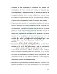 encuentran en total desventaja en comparación con métodos mas industrializados de hacer vivienda, sin embargo, es imperante que cualquiera que sea el material base con el que se fabriquen los muros de los espacios habitables, deberá mantener cualidades que tomen en cuenta las condiciones medioambientales del lugar, específicamente de resistencia a flujos térmicos importantes entre el exterior y el interior de la vivienda. 2. El aprovechamiento planeado de las pendientes naturales en los terrenos donde se emplazaran las viviendas deberá estar pensado para incidir en lo menos posible en modificaciones fuertes en la conformación de los suelos, ya que con esto se reducen los riesgos tanto de derrumbes en cortes de terreno como en las posibles modificaciones que se realizan a los cauces naturales de las precipitaciones pluviales, favoreciendo con esto a la reducción de la erosión y la contaminación del ambiente por polvo y otras partículas. 3. Es imperante la utilización de la tipología de vivienda con techumbres inclinadas y en dos o más aguas debido a que las características meteorológicas de la ciudad de Nogales. Es importante reducir el impacto tanto de la caída de lluvias torrenciales como de nevadas, ya que con esto se reducen las posibilidades de desgaste de los materiales que esta construida la vivienda así como el riesgo de fallas en la estructura general de la casa por el exceso de cargas acumuladas. 4. La utilización y diseño adecuado de sistemas pasivos de ventilación en el interior de la vivienda reduce el gasto de energéticos y con esto una mejor 114