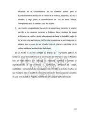 eficiencia en el funcionamiento de los sistemas activos para el acondicionamiento térmico en el interior de la vivienda, logrando a su vez a mediano y largo plazo la economización en uso de estos últimos, favoreciendo así a la calidad e vida del usuario. 5. La inclusión o la posibilidad de adición de espacios de transición al exterior permite a los usuarios construir y fortalecer lazos sociales de cuyas actividades se pueden derivar el enriquecimiento de la inclusión social de los actores y las expresiones de identidad producto de la apropiación de un espacio que a pesar de ser privado invita al externo a participar de la cultura estética y arquitectónica de lo local. Es un hecho la enorme cantidad de trabajo que representa detener la tendencia actual de la industria de la construcción de vivienda no solo en Nogales sino en todo México. Sin embargo es necesario reafirmar el llamado al replanteamiento de las dinámicas de planificación, verificación de calidad, cualidades y concordancia de los proyectos con el medio y sociedad locales, ya que mediante esto es posible la verdadera adecuación de los espacios habitables no solo en la ciudad de Nogales, Sonora sino en cualquier parte del mundo. 115