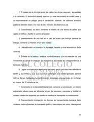 1. El peatón es el principal actor, las calles han de ser seguras y agradables a la caminata. El automóvil deberá estar en un nivel secundario en estas zonas y no representaran un peligro para el transeúnte, además, los servicios edificios públicos deberán estar a no mas de diez minutos de distancia a pie. 2. Conectividad, es decir, fomentar el diseño de una trama de calles que agilice el tráfico y facilite el camino al peatón 3. planteamiento de una red en el uso del suelo que incluya centros de trabajo, comercio y vivienda en un solo núcleo. 4. Diversificación en cuanto a la tipología, tamaño y nivel económico de la vivienda. 5. Énfasis en la belleza, estética, confort humano y en la creación de una conciencia en donde la creación de espacios se encuentre en correspondencia a la escala humana. 6. Lograr una estructura tradicional de barrio en el cual este bien definido el centro y sus limites y que sus espacios contengan una calidad pensada para el disfrute de sus habitantes; La conformación de acceso a los servicios en un rango no mayor de 10 minutos a pie. 7. Incremento en la densidad residencial, comercio y servicios en un mismo entramado urbano para así eficientar el uso de recursos y servicios y facilitar el acceso a todos los espacios por medio de medios de transporte no motorizados. 8. Transportación inteligente: las formas de transportación humana debe contener redes eficientes de transporte público interurbano así como interregional 25