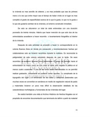 la vivienda es mas sencillo de obtener, y es mas probable que sea de primera mano a la ves que entre mayor sea el tiempo de haber vivido en el lugar es mas completo el grado de especificidad acerca de lo que le gusta, lo que no le gusta o lo que ele gustaría cambiar de la vivienda y el entorno construido inmediato. De esto se obtuvieron un total de siete entrevistas con una duración promedio de treinta minutos. Habría que hacer mención de que solo dos de los entrevistados accedieron a hacer recorrido o levantamiento fotográfico al interior de la vivienda. Después de esta actividad se procedió a hacer lo correspondiente en la colonia Buenos Aires en donde pro precaución y recomendaciones hechas por colaboradores solo se hicieron recorridos durante la mañana. Es reconocida la peligrosidad de esta colonia sobretodo después de caer la tarde. De esos recorridos se pudieron levantar cinco entrevistas. El grado de rechazo hacia el entrevistador es mayor como se hizo notar al haber sido negada la plática en al menos cuatro ocasiones. Y una de las cinco antes mencionadas no se permitió realizar grabación, únicamente se pudieron tomar apuntes. Lo complicado de la topografía del lugar y el entramado de las calles y callejones peatonales que muchas veces se convertían en senderos en medio de vegetación natural de pasto y matorrales hicieron un poco mas difícil la observación detallada de las características morfológicas y funcionales de las viviendas del lugar. Se realizó también una visita al Archivo Histórico de Heróica Nogales con el propósito de encontrar documentación que terminaría de definir a partir de material 34