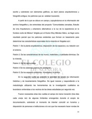 escrito y sobretodo con elementos gráficos, es decir planos arquitectónicos y fotografía antigua, los patrones que se estaban buscando. A partir de lo que se obtuvo en campo y apoyándonos en la información del archivo fotográfico y de entrevistas del proyecto “Comunidades cercadas, Estudio de Una Arquitectura y urbanismo alternativos a la luz de la experiencia en la frontera norte de México” dirigida por el Doctor Eloy Méndez Sáinz, se llegó como resultado parcial que los patrones existentes que forman en basamento para determinar las características esenciales de la vivienda en Nogales son: Patrón 1: De la planta arquitectónica, disposición de los espacios y su relación con el entorno. Patrón 2: De las características de los muros, materiales y cualidades térmicas. De la vivienda. Patrón 3: De las techumbres. Patrón 4 De los sistemas pasivos de ventilación Patrón 5: De los espacios exteriores. Inmediatos; el pórtico. En la segunda vuelta se extendió la actividad de acopio de información histórica y de levantamiento fotográfico. De igual manera y respondiendo a la metodología utilizando las herramientas de la investigación cualitativa se levantaron entrevistas a los vecinos de las áreas estudiadas por segunda vez. Fueron necesarias otras dos vueltas al campo de menor duración (tres dias cada una)a raíz de algunas limitantes emergentes durante el acopio de documentación, sobretodo al momento de intentar coincidir en horarios y disposición de personas e instituciones a la vez que fue necesario hacer rondas de 35