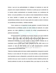 únicas o que por sus particularidades no reflejaran la tendencia en serie del proyecto como conjunto habitacional. Tomando en cuenta que por la extensión de la mancha urbana eventualmente se encuestan terrenos con condiciones del terreno con poca pendiente, en los cuales se crean emplazamientos de vivienda, se busco también el ejemplo que estuviera localizado en un lugar con características similares a las de la mayor parte de la ciudad, es decir en terrenos con pendientes pronunciadas y cañadas naturales. Como veremos en el desarrollo de este apartado, la sección Encinos del fraccionamiento Las Bellotas cumple con estos criterios de selección, los cuales generan una mejor plataforma al momento de revisar comparativamente los patrones reconocidos. El fraccionamiento Las Bellotas se encuentra ubicado al sur de la ciudad de Nogales, sobre lo que alguna vez fueron terrenos de reserva, este megaproyecto habitacional contempla en su plan maestro un total de 40000 viviendas con un crecimiento anual de 800 casas. Hasta mediados del año 2006 vivían en el conjunto un total de 2000 familias con un perfil socioeconómico promedio correspondiente al de interés social. Todas las viviendas parten del mismo modelo arquitectónico incluyendo la sección Encinos, la cual consta de 140 casas en una sola avenida y cuya característica mas importante es que su disposición y promoción de venta es el hecho de que la avenida única que cruza la sección se encuentra cerrada mediante portones de herrería además de contar con dos espacios libres, que auque en los dos años 65