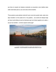 que tiene el conjunto de haberse construido se encuentran como baldíos estos están reservados pera su uso como área verde recreativa. “Pues pusieron puras plantas nomás allí, pero nunca han puesto nada, nada como algo recreativo no han puesto allí, si me gustaría... una cancha de básquet algo así hace mucha falta por que los chamacos aquí se la llevan jugando en la calle, o sea por eso también , no tienen espacio donde jugar“ Ilustración 9 . Area de Donación en Sección Encinos Fuente: El Autor 66