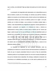 aquí y se fijan ¿me entiendes? Algo que dejes mal puesto yen la noche vienen por 54 el.“ La percepción de inseguridad está relacionada con la desconfianza que se tiene al extraño, al pobre, etc. Sin embargo, en colonias cuyo perfil de vivienda y objetivo de mercado es la del interés social y donde muchos de los habitantes son precisamente familias que vienen de distintos puntos de la región o del país, atraídos por la oferta de trabajo y que provienen de estratos sociales bajos o medios, o bien descendientes de emigrantes de segunda o tercera generación, la realidad y percepción con respecto a la incidencia de robos y violencia es relativamente la misma, existe en muchos casos la opinión que los “nuevos que llegan o están de paso” son los que contribuyen a la falta de estabilidad social y al aumento de la criminalidad. De manera que se generan tendencias al aislamiento ente miembros del mismo estrato social, lo cual da cabida a afirmar que la sociedad victima del miedo, la búsqueda de aislamiento y el intento de separarse del extraño esta en la actualidad ha permeado a cada rincón y costura de los diferentes estratos sociales. La búsqueda de seguridad es una constante afirmación entre los propietarios de vivienda en la sección Encinos del fraccionamiento Las Bellotas. El hecho de que el conjunto presentaba formas de cerrar el flujo de automóviles mediante puertas en los principales accesos fue una de las causas principales por las que las viviendas fueron adquiridas. Sin embargo, analizando la situación nos encontramos con realidades encontradas, por un lado está la preferencia de vivir 54 Vecino de la seccion Encinos del Fraccionamiento Las Bellotas 72