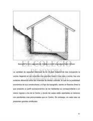 Ilustración 16 Corte esquemático de vivienda en terreno con pendiente Fuente: El Autor La cantidad de espacios interiores es en la gran mayoría de tres incluyendo la cocina, llegando en las viviendas mas grandes hasta 4 mas sala y cocina, hay una evidente diferencia entre las viviendas de ambas colonias, la cual es la posibilidad económica de sus constructores y el tipo de topografía, siendo en Buenos Aires la que presenta un perfil socioeconómico de los habitantes es correspondiente a un menor ingreso a los de la Centro y donde las casas están asentadas en terrenos con pendientes mas pronunciadas que en Centro. Sin embargo, en cada caso se presentan grandes similitudes: 81