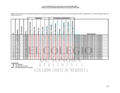 Tabla 5. Matriz de análisis de procedimientos administrativos en la regularización de concesiones de acuerdo con la Ley 56 de Transporte de 1984, correspondiente a concesiones otorgadas según leyes 117 Observaciones. Concesión no regularizada. Ley 56 Art. 3 Transitorio. Concesión no regularizada. Ley 56 Art. 3 Transitorio. Concesión no regularizada. Ley 56 Art. 3 Transitorio. Concesión no regularizada. Ley 56 Art. 3 Transitorio. Concesión no regularizada. Ley 56 Art. 3 Transitorio. Concesión no regularizada. Ley 56 Art. 3 Transitorio. Concesión no regularizada. Ley 56 Art. 3 Transitorio. Concesión no regularizada. Ley 56 Art. 3 Análisis de los procedimientos administrativos de la concesión 1982 - 2004 El servicio público de transporte urbano de la ciudad de Hermosillo: si La Dgt expide Permisos Se notofica resolución nd si nd si nd si nd si nd nd nd si nd nd nd si nd si nd nd nd nd nd nd nd si nd si nd nd nd nd nd Procedimiento Administrativo Resolución definitiva En tiempo si nd si no nd nd nd nd nd nd nd nd nd nd nd nd nd nd nd nd nd nd nd nd nd nd nd nd nd nd nd nd nd nd nd Se ratificó solicitud Solic. Presentada nd si nd nd nd nd nd nd nd nd nd nd nd nd nd nd nd nd nd nd nd nd nd nd nd nd nd nd nd nd nd nd nd nd Carta Ant. Pen. nd nd nd nd nd nd nd nd nd nd nd nd nd nd nd nd nd No Func. Mun. nd nd nd nd nd nd nd nd nd nd nd nd nd nd nd nd Requisitos No Fuc. Est. nd nd nd nd nd nd nd nd nd nd nd nd nd nd nd nd nd nd No Func. Fed. nd nd nd nd nd nd nd nd nd nd nd nd nd nd nd nd nd Ciudadano Sonorense nd nd nd nd nd nd nd nd nd nd nd nd nd nd nd nd 1 8 8 7 9 1978 Fecha No. Concesion 1983 1978 1984 1985 9 1 1984 1984 1 1988 1986 1978 1991 1982 1976 1977 1991 Que cumple con la Ley DGT : Dirección General de Transporte. anteriores a la ley 56. Aleatorio No. 333 1 100 2 268 3 343 4 148 5 7 64 118 7 113 8 1 93 214 10 175 11 42 12 302 13 77 14 314 15 23 16 386 17 Anotaciones: No disponible. nd : si :