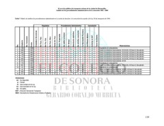 119 Observaciones. Cesión de derechos improcedente. Art.34,36 y 49 fracc.II, 2do párrafo Cesión de derechos improcedente. Art.34,36 y 49 fracc.II, 2do párrafo Cesión de derechos improcedente. Art.34,36 y 49 fracc.II, 2do párrafo Cesión de derechos improcedente. Art.34,36 y 49 fracc.II, 2do párrafo Cesión de derechos improcedente. Art.34,36 y 49 fracc.II, 2do párrafo Cesión de derechos improcedente. Art.34,36 y 49 fracc.II, 2do párrafo Cesión Expediente sin antecedentes. Cesión de derechos improcedente. Art.34. Expediente sin antecedentes. Expediente sin antecedentes. Tabla 7. Matriz de análisis de procedimientos administrativos la cesión de derechos de concesión de acuerdo a la Ley 56 de transporte de 1984. Análisis de los procedimientos administrativos de la concesión 1982 - 2004 El servicio público de transporte urbano de la ciudad de Hermosillo: no Tiene facultades no no no no no no no no no no no no Cancelación Autoriza la DGT si si si si si si si si si si si si si nd Certificado Médico no no no no no si nd no nd si no no nd La Dgt expide Permisos Se notofica resolución nd si si si si si si si si si si si si nd nd si si si nd nd si si si si si Procedimiento Administrativo Resolución definitiva En tiempo nd nd si si si no si no si si si nd si si nd nd osi pn si nd si no osi pn osi pn nd Se ratificó solicitud Solic. Presentada nd si si si si no si p si nd nd p si nd nd si nd nd si si si si nd Carta Ant. Pen. si nd nd nd nd si nd nd nd si si si nd No Func. Mun. si nd nd si nd si nd nd nd si si si Requisitos No Fuc. Est. nd si nd nd si nd si nd nd nd si si si nd No Func. Fed. nd nd nd nd nd si nd nd nd si si si nd Ciudadano Sonorense si nd nd si nd si nd nd nd si si si 1989 Fecha 1991 1987 1987 1991 1990 1990 1987 1991 1988 1990 1991 1992 Que incumple con la Ley DGT : Dirección General de Transporte. SIUE : Secretaría de Infraestructura Urbana y Ecología. No disponible. Que cumple con la Ley No. Concesion 196 Aleatorio 268 343 118 113 433 214 175 261 42 42 302 217 Parcial No aplica. 1 No. 2 3 4 5 6 7 8 9 10 11 12 Anotaciones: nd : p : si : no : na :