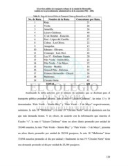 El servicio público de transporte urbano de la ciudad de Hermosillo: Análisis de los procedimientos administrativos de la concesión 1982 – 2004. Tabla 11. Rutas del Servicio Público de Transporte Urbano en Hermosillo en el 2005. No. de Ruta. Nombre de la Ruta. Concesiones por Ruta. 1 Roja. 21 2 Verde. 26 3 Amarilla. 24 4 Lázaro Cárdenas. 40 5 12 de Octubre - Estación. 18 6 Peni - López del Castillo. 27 8 Coloso - Los Olivos. 22 9 Amapolas. 13 10 Sahuaro - Olivares. 22 11 Conasupo - Luis Orcí. 24 12 Ley 57 - Emiliano Zapata. 20 13 Palo Verde - Simón Bley. 22 14 Palo Verde - 5 de Mayo. 22 15 Fuentes - Modelo. 18 16 General Piña - Reforma. 22 17 Primero Hermosillo - Choyal. 26 18 Multirutas. 42 19 Circuito Norte. 42 TOTAL. 451 Analizando la tabla anterior, por el número de unidades que se destinan para el transporte público podemos advertir que la ruta 4 “Lázaro Cárdenas”, las rutas 13 y 14 denominadas “Palo Verde – Simón Bley” y “Palo Verde – 5 de Mayo” respectivamente, asimismo, la ruta 18 “Multirutas” y la ruta 19 “Circuito Norte” son en apariencia son las que más demanda tienen. Y en efecto, de acuerdo con la información que muestra el Cuadro “x”, la ruta 4 “Lázaro Cárdenas” tiene un aforo diario promedio por unidad de 39,040 usuarios, la ruta “Palo Verde – Simón Bley” y “Palo Verde – 5 de Mayo”, presenta un aforo diario promedio por unidad de 28,534 pasajeros, la ruta 18 “Multirutas” tiene 33,894 usuarios promedio al día por unidad y finalmente la ruta 19 “Circuito Norte” tiene una demanda promedio al día por unidad de 25,384 pasajeros. 129