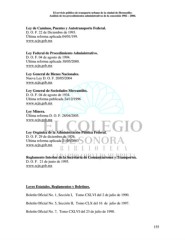El servicio público de transporte urbano de la ciudad de Hermosillo: Análisis de los procedimientos administrativos de la concesión 1982 – 2004. Ley de Caminos, Puentes y Autotransporte Federal. D. O. F. 22 de Diciembre de 1993. Última reforma aplicada 04/01/199. www.scjn.gob.mx Ley Federal de Procedimiento Administrativo. D. O. F. 04 de agosto de 1994. Ultima reforma aplicada 30/05/2000. www.scjn.gob.mx Ley General de Bienes Nacionales. Nueva Ley D. O. F. 20/05/2004 www.scjn.gob.mx Ley General de Sociedades Mercantiles. D. O. F. 04 de agosto de 1934. Ultima reforma publicada 24/12/1996 www.scjn.gob.mx Ley Minera. Última reforma D. O. F. 28/04/2005. www.scjn.gob.mx Ley Orgánica de la Administración Pública Federal. D. O. F. 29 de diciembre de 1976. Ultima reforma aplicada 21/05/2003 www.scjn.gob.mx Reglamento Interior de la Secretaría de Comunicaciones y Transportes. D. O. F. 21 de junio de 1995. www.scjn.gob.mx Leyes Estatales, Reglamentos y Boletines. Boletín Oficial No. 1, Sección I, Tomo CXLVI del 2 de julio de 1990. Boletín Oficial No. 5, Sección II, Tomo CLX del 16 de julio de 1997. Boletín Oficial No. 7, Tomo CXLVI del 23 de julio de 1990. 155