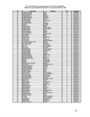 El servicio público de transporte urbano de la ciudad de Hermosillo: Análisis de los procedimientos administrativos de la concesión 1982 – 2004. No. APELLIDO(S) NOMBRE(S) RUTA CONCESION 78 CHAVEZ ECHEVERRIA JESUS 19 P020095HLLO. 79 CHAVEZ ECHEVERRIA JESUS 19 P020153HLLO. 80 CHAVEZ ECHEVERRIA JESUS 19 P020352HLLO. 81 CHAVEZ SANCHEZ MEDARDO 18 P020115HLLO. 82 CLEMENTE SANTIAGO FELICITAS 6 P020194HLLO. 83 CLEMENTE SANTIAGO FERNANDO 10 P020069HLLO. 84 COHEN HERRERA JESUS 13 P020264HLLO. 85 COHIRA QUIÑONES CLAUDIA ELENA 6 P020183HLLO. 86 CONS SAN MARTIN LUIS 11 P020208HLLO. 87 CONTRERAS IBARRA LUIS ELIAS 17 P020343HLLO. 88 CORDOVA ALFONSO 3 P020047HLLO. 89 CORDOVA ALFONSO 5 P020314HLLO. 90 CORNEJO CAMPA SABAS 4 P020235HLLO. 91 CORNEJO CAMPA VICTOR MANUEL 10 P020126HLLO. 92 CORNEJO CAMPA VICTOR MANUEL 10 P020210HLLO. 93 CORNEJO CAMPA SABAS 10 P020514HLLO. 94 CORNEJO CAMPAS SERGIO 19 P020163HLLO. 95 CORTEZ RODRIGUEZ PEDRO 4 P020362HLLO. 96 COTA ESCARCEGA MATILDE LORENA 15 P020298HLLO. 97 CRUZ VARELA ISRAEL 8 P020215HLLO. 98 CRUZ VARELA ISRAEL 8 P020444HLLO. 99 DANIEL LUCERO CONCEPCION 3 P020060HLLO. 100 DAVILA DAVILA JOSE 2 P020050HLLO. 101 DAVILA ORDUÑO ROSA MARIA 19 P020165HLLO. 102 DE LA VARA DE FRANCISCA MIREYA 3 P020052HLLO. 103 DE LEON DEL BOSQUE CORTEZ MARIZA 17 P020073HLLO. 104 DEL RINCON ROBLES SIGIFREDO 9 P020478HLLO. 105 DEL TORO GARCIA JUAN JESUS 6 P020187HLLO. 106 DIAZ COTA VICTOR MANUEL 15 P020066HLLO. 107 DIAZ COTA VICTOR MANUEL 15 P020169HLLO. 108 DIAZ FAJARDO PORFIRIO 14 P020332HLLO. 109 DIURAZO APODACA MANUEL EULOGIO 2 P020038HLLO. 110 DUARTE MORENO ALMA LORENIA 18 P020121HLLO. 111 DURAZO VAZQUEZ FILIBERTO 13 P020333HLLO. 112 EDGARDO ROBLES JESUS 1 P020004HLLO. 113 ENCINAS ENCINAS ROGELIO 15 P020295HLLO. 114 ENCINAS FIGUEROA MIGUEL ANGEL 13 P020266HLLO. 115 ESCALANTE MARTINEZ JAVIER 10 P020164HLLO. 116 ESCALANTE ROBLEDO GUADALUPE 4 P020402HLLO. 117 ESCOBAR CASTELLANOS MIGUEL 2 P020035HLLO. 118 ESPECIAL TRANSPORTE 4 P020425HLLO. 119 ESPECIAL TRANSPORTE 18 P020102HLLO. 120 ESPECIAL TRANSPORTE 18 P020257HLLO. 121 ESTRADA VDA. DE GONZALEZ ESTHER 6 P020185HLLO. 122 FELIX TOPETE MARTIN GUILLERMO 18 P020091HLLO. 123 FERNANDEZ DE LA VARA PORFIRIA 15 P020437HLLO. 124 FIGUEROA FIGUEROA ALFREDO 6 P020195HLLO. 125 FIGUEROA GUERRERO FELIPE 6 P020181HLLO. 126 FIGUEROA GUERRERO FELIPE 6 P020504HLLO. 127 FLORES DAVALOS FELIPE 2 P020250HLLO. 128 FLORES DE GARCIA ADELA 1 P020019HLLO. 129 FRANCO PORTILLO CARLOS CESAR 17 P020244HLLO. 130 FRAYDE RAMOS CARLOS HUMBERTO 6 P020423HLLO. 131 FUENTES ALVAREZ ALMA LETICIA 13 P020254HLLO. 132 GALLEGOS ENCINAS REY ARMANDO 3 P020086HLLO. 133 GALLEGOS SALAZAR LADISLAO 17 P020387HLLO. 134 GALVEZ MARTINEZ FRANCISCO GABRIEL 10 P020421HLLO. 135 GARCIA AVILA ALBERTO 14 P020131HLLO. 136 GARCIA AVILA OSCAR 17 P020240HLLO. 137 GARCIA DURAZO JOSE ROBERTO 17 P020245HLLO. 138 GARCIA FLORES YOLANDA 1 P020010HLLO. 139 GARCIA MEJIA MARIA ELENA 3 P020041HLLO. 140 GARCIA MILLANES PABLO 19 P020159HLLO. 141 GARCIA MONTAÑO MIGUEL 10 P020291HLLO. 142 GARCIA MORENO FELIZARDO 14 P020364HLLO. 143 GARCIA ZUÑIGA TOMAS 11 P020199HLLO. 144 GARZA GONZALEZ MAURO GILBERTO 1 P020003HLLO. 145 GASPAR FIERRO EDUARDO 4 P020232HLLO. 146 GENESTA LEYVA CECILIA GUADALUPE 1 P020011HLLO. 147 GERARDO QUEZADA EMILIO 16 P020288HLLO. 148 GERARDO QUEZADA EMILIO 16 P020289HLLO. 149 GIL YAÑEZ DOLORES VERONICA 8 P020439HLLO. 150 GIL YAÑEZ MARTÍN ANTONIO 15 P020178HLLO. 151 GOMEZ BLANCO RAMON RODOLFO 9 P020055HLLO. 152 GOMEZ IBARRA GEORGINA 12 P020360HLLO. 153 GOMEZ RIVERA HUGO JESUS 10 P020436HLLO. 154 GONZALEZ HERREERA DEBORA 14 P020253HLLO. 161