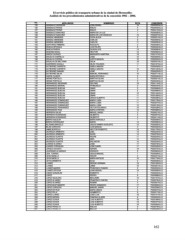 El servicio público de transporte urbano de la ciudad de Hermosillo: Análisis de los procedimientos administrativos de la concesión 1982 – 2004. No. APELLIDO(S) NOMBRE(S) RUTA CONCESION 155 GONZALEZ HERRERA JOSE ISRAEL 14 P020320HLLO. 156 GONZALEZ PEREZ EMILIO 4 P020403HLLO. 157 GONZALEZ PEREZ EMILIO 4 P020412HLLO. 158 GONZALEZ SANCHEZ MARIA DE LA LUZ 1 P020005HLLO. 159 GONZALEZ SANCHEZ MARIA DE LOS ANGELES 13 P020267HLLO. 160 GONZALI MENESES DORA ALICIA 2 P020051HLLO. 161 GONZALI MENESES CARLOS 9 P020495HLLO. 162 GONZALI MENESES CARLOS 11 P020205HLLO. 163 GORTAREZ FIMBRES RODOLFO 2 P020048HLLO. 164 GRACIA APODACA LUIS FELIPE 5 P020304HLLO. 165 GRACIA RIVERA GUADALUPE 14 P020068HLLO. 166 GRAHAM SOQUI HECTOR 15 P020292HLLO. 167 GREGO DURAZO MARGARITA MARTINA 19 P020147HLLO. 168 GRIJALVA CARRILLO JOSE 15 P020300HLLO. 169 GRIJALVA CORRAL JUSTO MANUEL 15 P020302HLLO. 170 GRIJALVA DE BELTRAN CELIA 18 P020337HLLO. 171 GUERRERO ZAVALA HILDA YOLANDA 11 P020197HLLO. 172 GUTIERREZ CARRETE GISELA MAURA 1 P020049HLLO. 173 GUTIERREZ CARRETE GISELA MAURA 15 P020133HLLO. 174 GUTIERREZ RANGEL JOSE 2 P020023HLLO. 175 GUTIERREZ SILVA MANUEL FERNANDO 10 P020371HLLO. 176 HAROS CLARCK MARIA ESTHELA 2 P020046HLLO. 177 HERAS PORTILLO MARTHA OLIVIA 3 P020061HLLO. 178 HERAS PORTILLO MARTHA OLIVIA 3 P020346HLLO. 179 HERNANDEZ ASCENSIO DELFINO 18 P020114HLLO. 180 HERNANDEZ BERNAL FRANCISCO 3 P020044HLLO. 181 HERNANDEZ BUELNA OMAR 5 P020368HLLO. 182 HERNANDEZ BUELNA OMAR 5 P020489HLLO. 183 HERNANDEZ BUELNA OMAR 10 P020140HLLO. 184 HERNANDEZ BUELNA OMAR 11 P020166HLLO. 185 HERNANDEZ BUELNA JESUS ALBERTO 11 P020258HLLO. 186 HERNANDEZ DOMINGUEZ MARIA LUISA 11 P020176HLLO. 187 HERNANDEZ DOMINGUEZ MARIA LUISA 11 P020207HLLO. 188 HERNANDEZ DOMINGUEZ MARIA LUISA 12 P020216HLLO. 189 HERNANDEZ FERNANDEZ VICTOR EDUARDO 15 P020438HLLO. 190 HERNANDEZ RUIZ MARIA CRISTINA 14 P020369HLLO. 191 HERRERA GALAZ MIGUEL ANGEL 2 P020021HLLO. 192 HERRERA RODRIGUEZ GILBERTO 4 P020397HLLO. 193 HERRERA RODRIGUEZ GILBERTO 4 P020411HLLO. 194 IBARRA AGUILAR MARIA MARCELA 1 P020009HLLO. 195 IBARRA RODRIGUEZ MARIO 13 P020269HLLO. 196 IGLESIAS BARCELO JESUS RAMIRO AUGUSTO 13 P020263HLLO. 197 ISLAS CORDOVA LUIS MANUEL 4 P020400HLLO. 198 JAIME BURROLA HECTOR ROBERTO 19 P020175HLLO. 199 JAUREGUI ARMENTA JOEL 14 P020334HLLO. 200 JAUREGUI ARMENTA DAVID 14 P020375HLLO. 201 JAUREGUI DUARTE FELIPE 11 P020203HLLO. 202 JAUREGUI DUARTE ABEL 14 P020324HLLO. 203 JAUREGUI DUARTE SALVADOR 14 P020344HLLO. 204 JUAREZ ALVAREZ JOSE 17 P020079HLLO. 205 JUAREZ CORRALES JOSE DARIO 17 P020335HLLO. 206 LAPIZCO ACOSTA ADRIAN 19 P020373HLLO. 207 LAUREANO ALVARADO HORACIO 9 P020382HLLO. 208 LEAL TORRES JESUS MANUEL 1 P020006HLLO. 209 LEON BADILLA OSCAR 4 P020401HLLO. 210 LEON BADILLA MARIA MATILDE 10 P020170HLLO. 211 LEYVA ARMENTA ELSA 2 P020036HLLO. 212 LLANEZ SERGIO GERMAN 19 P020150HLLO. 213 LLANEZ JAIME 19 P020381HLLO. 214 LLANEZ MADRID FRANCISCO RAMON 5 P020303HLLO. 215 LLANEZ ORTEGA JUAN MIGUEL 10 P020356HLLO. 216 LOERA GONZALEZ ROBERTO 1 P020002HLLO. 217 LOPEZ PEDRO 9 P020088HLLO. 218 LOPEZ AGUILERA BENJAMIN 19 P020157HLLO. 219 LOPEZ ALVAREZ FRANCISCO RAFAEL 4 P020076HLLO. 220 LOPEZ ALVAREZ ROMAN 4 P020361HLLO. 221 LOPEZ BUSTAMANTE PEDRO ARMANDO 17 P020383HLLO. 222 LOPEZ CORDOVA MANUEL MARIA 3 P020336HLLO. 223 LOPEZ DE RUIZ MARIA JESUS 3 P020007HLLO. 224 LOPEZ FELIX HUMBERTO 9 P020217HLLO. 225 LOPEZ LLANEZ JOSE LUIS 19 P020151HLLO. 226 LOPEZ MEDINA RAMONA GLADIS 6 P020502HLLO. 227 LOPEZ OCHOA LUIS ALBERTO 16 P020189HLLO. 228 LOPEZ OCHOA LUIS ALBERTO 16 P020247HLLO. 229 LOPEZ OCHOA LUIS ALBERTO 16 P020283HLLO. 230 LOPEZ PERALTA IMELDA 6 P020279HLLO. 231 LOPEZ PERALTA IMELDA 6 P020503HLLO. 162
