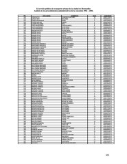 El servicio público de transporte urbano de la ciudad de Hermosillo: Análisis de los procedimientos administrativos de la concesión 1982 – 2004. No. APELLIDO(S) NOMBRE(S) RUTA CONCESION 232 LOPEZ SOTO FRANCISCO ANTONIO 18 P020111HLLO. 233 LOPEZ TAPIA BENJAMIN 19 P020200HLLO. 234 LOPEZ VALENZUELA ISAIAS 4 P020145HLLO. 235 LUCERO MOLINA RAMON 4 P020370HLLO. 236 LUCERO PALACIOS RITA 6 P020501HLLO. 237 LUGO ARREDONDO JOSE EDUARDO 6 P020062HLLO. 238 LUNA RODRIGUEZ OLGA ALICIA 12 P020228HLLO. 239 LUNA RODRIGUEZ OLGA ALICIA 12 P020312HLLO. 240 MACHICHI MUÑOZ FELIPE ANGEL 9 P020058HLLO. 241 MADRID GALAZ JOSE FRANCISCO 16 P020276HLLO. 242 MADRID GALAZ OSCAR 16 P020278HLLO. 243 MADRID GALAZ OSCAR 16 P020282HLLO. 244 MADRID GALAZ MANUEL MARIA 16 P020287HLLO. 245 MADRID GALAZ JOSE FRANCISCO 16 P020290HLLO. 246 MADRID GALAZ JOSE FRANCISCO 16 P020442HLLO. 247 MADRID GALAZ MANUEL 19 P020132HLLO. 248 MALDONADO BARCELO MANUEL EDUARDO 5 P020318HLLO. 249 MALDONADO BARCELO MANUEL EDUARDO 5 P020392HLLO. 250 MALDONADO CORDOVA MARCO ANTONIO 18 P020113HLLO. 251 MALDONADO LOPEZ VERONICA 13 P020261HLLO. 252 MANCILLAS ALVAREZ ARTURO 17 P020296HLLO. 253 MANCILLAS ALVAREZ ARTURO 18 P020119HLLO. 254 MANJARREZ ORDUÑO MARCO ANTONIO 2 P020037HLLO. 255 MANRIQUEZ LOPEZ MARIA DEL ROSARIO 19 P020167HLLO. 256 MARTINEZ FRANCISCO ERNESTO 2 P020027HLLO. 257 MARTINEZ CASTILLO LETICIA 3 P020445HLLO. 258 MARTINEZ LABORIN CUAUHTEMOC 9 P020249HLLO. 259 MARTINEZ RIVERA ALICIA 17 P020070HLLO. 260 MARTINEZ RIVERA ALICIA 17 P020233HLLO. 261 MAYTORENA MINJAREZ ENRIQUE 18 P020092HLLO. 262 MAYTORENA MINJAREZ ENRIQUE 18 P020094HLLO. 263 MAYTORENA MINJAREZ ENRIQUE 18 P020105HLLO. 264 MAYTORENA ZEPEDA ADALBERTO 18 P020098HLLO. 265 MAZON CARRAZCO TEODORO 6 P020192HLLO. 266 MAZON DAVILA MANUEL 6 P020191HLLO. 267 MEDINA ROSA MARIA 10 P020385HLLO. 268 MENDEZ LEYVA FRANCISCO 14 P020323HLLO. 269 MENDEZ LEYVA FRANCISCO 14 P020331HLLO. 270 MEZA FIMBRES NORMA DOLORES 18 P020099HLLO. 271 MILLANES GAXIOLA CESAR 8 P020084HLLO. 272 MIRANDA TORRES ROBERTO 11 P020160HLLO. 273 MIRANDA TORRES SERGIO 11 P020206HLLO. 274 MIRANDA TORRES CARLOS GUILLERMO 11 P020372HLLO. 275 MOLINA OCAÑA FEDERICO 11 P020246HLLO. 276 MONREAL VIDALES MARIA JESUS 17 P020075HLLO. 277 MONREAL VIDALES MARIA JESUS 17 P020243HLLO. 278 MONTAÑO LEON CARLOS 4 P020406HLLO. 279 MONTES DE OCA CUAUHTEMOC 4 P020396HLLO. 280 MONTES DE OCA MUCIÑO CUAUHTEMOC 18 P020100HLLO. 281 MONTES DE OCA MUCIÑO CUAUHTEMOC 18 P020112HLLO. 282 MONTOYA GALAZ MARTIN OCTAVIO 13 P020188HLLO. 283 MORA RODRIGUEZ FELIPE DE JESUS 2 P020042HLLO. 284 MORALES ARAIZA RUBEN FERNANDO 1 P020012HLLO. 285 MORALES GARCIA FELICIANO 8 P020080HLLO. 286 MORALES MONTOYA GUILLERMO 18 P020104HLLO. 287 MORALES MONTOYA GUILLERMO 18 P020117HLLO. 288 MORALES MONTOYA GUILLERMO 18 P020229HLLO. 289 MORALES ROMERO GUILLERMO 18 P020109HLLO. 290 MORENO AGUILAR MARIA JESUS 1 P020001HLLO. 291 MORENO FLORES MARIO 2 P020033HLLO. 292 MORENO LOPEZ CESAR FRANCISCO 13 P020319HLLO. 293 MUÑOZ ALMADA JORGE LUIS 14 P020366HLLO. 294 MUÑOZ ALMADA JORGE 17 P020231HLLO. 295 MUÑOZ ALMADA JORGE 18 P020237HLLO. 296 MURRIETA RASCON JAVIER MARTIN 5 P020224HLLO. 297 NAVA GONZALEZ JOSE LUIS 17 P020135HLLO. 298 NEGRETE VDA. DE RUBIO MARIA OFELIA 18 P020108HLLO. 299 NORIEGA MARIA DEL CARMEN 6 P020190HLLO. 300 NORIEGA ARVAYO SERGIO 3 P020026HLLO. 301 NUÑEZ COCOBA ALICIA VICTORIA 18 P020101HLLO. 302 NUÑEZ QUIROZ RICARDO 6 P020500HLLO. 303 NUÑEZ ROBLES VENTURA ANTONIO 2 P020053HLLO. 304 NUÑEZ SARIÑANA ABELARDO 17 P020241HLLO. 305 NUSA, DE C.V. CONSTRUCCIONES 17 P020374HLLO. 306 OCHOA HERRERA RAMON CARLOS 13 P020265HLLO. 307 OCHOA URIARTE JOSE MARIA 18 P020103HLLO. 308 OLACHEA HORTENCIA CAROLINA 9 P020072HLLO. 163