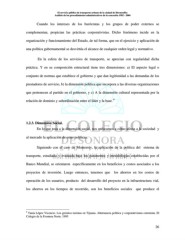 El servicio público de transporte urbano de la ciudad de Hermosillo: Análisis de los procedimientos administrativos de la concesión 1982 - 2004 Cuando los intereses de los burócratas y los grupos de poder externos se complementan, propician las prácticas corporativistas. Dicho fenómeno incide en la organización y funcionamiento del Estado, de tal forma, que en el ejercicio y aplicación de una política gubernamental se desvirtúa el alcance de cualquier orden legal y normativo. En la esfera de los servicios de transporte, se aprecian con regularidad dicha práctica. Y en su composición estructural tiene tres dimensiones: a) El aspecto legal o conjunto de normas que establece el gobierno y que dan legitimidad a las demandas de los prestadores de servicio, b) la dimensión política que incorpora a las diversas organizaciones que pertenecen al partido en el gobierno, y c) A la dimensión cultural representada por la 9 relación de dominio y subordinación entre el líder y la base. 1.2.3. Dimensión Social. En lo que toca a la dimensión social, nos enfocamos a cómo afecta a la sociedad y al mercado la aplicación de estas políticas. Siguiendo con el caso de Monterrey, la aplicación de la política del sistema de transporte, estudiada y evaluada bajo los parámetros y metodologías establecidas por el Banco Mundial, se orientaron específicamente en los beneficios y costos asociados a los proyectos de inversión. Luego entonces, tenemos que los ahorros en los costos de operación de los usuarios, producto del desarrollo del proyecto en la infraestructura vial, los ahorros en los tiempos de recorrido, son los beneficios sociales que produce el 9 Tania López Vicencio. Los gremios taxistas en Tijuana. Alternancia política y corporativismo cetemista. El Colegio de la Frontera Norte. 1995 26