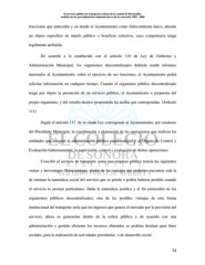 El servicio público de transporte urbano de la ciudad de Hermosillo: Análisis de los procedimientos administrativos de la concesión 1982 - 2004 fracciones que anteceden y en donde el Ayuntamiento como fideicomitente único, atiende un objeto específico de interés público o beneficio colectivo, cuya competencia tenga legalmente atribuida. De acuerdo a lo establecido con el artículo 110 de Ley de Gobierno y Administración Municipal, los organismos descentralizados deberán rendir informes mensuales al Ayuntamiento, sobre el ejercicio de sus funciones, el Ayuntamiento podrá solicitar información en cualquier tiempo. Cuando el organismo público descentralizado tenga por objeto la prestación de un servicio público, el Ayuntamiento a propuesta del propio organismo, y del estudio técnico propondrán las tarifas que correspondan. (Artículo 111) Según el artículo 117 de la citada Ley corresponde al Ayuntamiento, por conducto del Presidente Municipal, la coordinación y planeación de las operaciones que realicen las entidades que integran la administración pública paramunicipal y al Órgano de Control y Evaluación Gubernamental, la supervisión, control y evaluación de dichas operaciones. Concebir al servicio de transporte como una empresa pública traería las siguientes ventas y desventajas. Primeramente, dentro de las ventajas que podemos encontrar está la de retomar la naturaleza social del servicio que se pierde o podría haberse perdido cuando el servicio lo prestan particulares. Dada la naturaleza jurídica y el fin primordial de los organismos públicos descentralizados, otra de las posibles ventajas de esta forma institucional del transporte sería que los ingresos que genera el mercado por la provisión del servicio, ahora se generarían dentro de la esfera pública y de acuerdo con una administración y gestión eficiente los recursos obtenidos se podrían destinar para fines sociales, para la realización de actividades prioritarias o de desarrollo social. 34