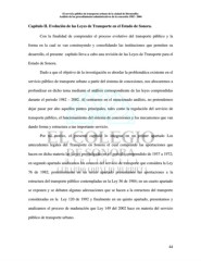 El servicio público de transporte urbano de la ciudad de Hermosillo: Análisis de los procedimientos administrativos de la concesión 1982 - 2004 Capítulo II. Evolución de las Leyes de Transporte en el Estado de Sonora. Con la finalidad de comprender el proceso evolutivo del transporte público y la forma en la cual se van construyendo y consolidando las instituciones que permiten su desarrollo, el presente capítulo lleva a cabo una revisión de las Leyes de Transporte para el Estado de Sonora. Dado a que el objetivo de la investigación es abordar la problemática existente en el servicio público de transporte urbano a partir del sistema de concesiones, nos abocaremos a profundizar en dicho tema mediante el análisis correspondiente de las leyes comprendidas durante el periodo 1982 – 2002. Al centrarnos en el mencionado análisis, no pretendemos dejar pasar por alto aquellos puntos principales, tales como la regulación del servicio de transporte público, el funcionamiento del sistema de concesiones y los mecanismos que van dando forma y estructura a tan importante servicio. Por tal motivo, el presente capítulo lo integran en un primer apartado Los antecedentes legales del Transporte en Sonora el cual comprende las aportaciones que hacen en dicha materia las Leyes promulgadas en el periodo comprendido de 1937 a 1972; en segundo apartado analizamos los avances del servicio de transporte que considera la Ley 76 de 1982; posteriormente en un tercer apartado presentamos las aportaciones a la estructura del transporte público contempladas en la Ley 56 de 1984; en un cuarto apartado se exponen y se debaten algunas adecuaciones que se hacen a la estructura del transporte consideradas en la Ley 120 de 1992 y finalmente en un quinto apartado, presentamos y analizamos el proceso de maduración que Ley 149 del 2002 hace en materia del servicio público de transporte urbano. 44