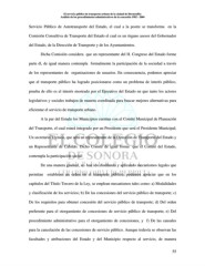 El servicio público de transporte urbano de la ciudad de Hermosillo: Análisis de los procedimientos administrativos de la concesión 1982 - 2004 Servicio Público de Autotransporte del Estado, el cual a la postre se transforma en la Comisión Consultiva de Transporte del Estado el cual es un órgano asesor del Gobernador del Estado, de la Dirección de Transporte y de los Ayuntamientos. Dicha Comisión considera que un representante del H. Congreso del Estado forme parte él, de igual manera contempla formalmente la participación de la sociedad a través de los representantes de organizaciones de usuarios. En consecuencia, podemos apreciar que el transporte público ha logrado posicionarse como un problema de interés público, prueba de ello es el interés mostrado por el Ejecutivo del Estado en que tanto los actores legislativos y sociales trabajen de manera coordinada para buscar mejores alternativas para eficientar el servicio de transporte urbano. A la par del Estado los Municipios cuentan con el Comité Municipal de Planeación del Transporte, el cual estará integrado por un Presidente que será el Presidente Municipal; Un secretario Técnico, que será un representante de la Dirección de Transporte del Estado y un Representante de Cabildo. Dicho Comité de igual forma que el Comité del Estado, contempla la participación social. De una manera gradual, se han ido diseñando y aplicando mecanismos legales que permitan establecer un orden en el transporte público, podemos apreciar que en los capítulos del Título Tercero de la Ley, se emplean mecanismos tales como: a) Modalidades y clasificación de los servicios; b) De las concesiones del servicio público de transporte; c) De los requisitos para obtener concesión del servicio público de transporte; d) Del orden preferente para el otorgamiento de concesiones de servicio público de transporte; e) Del procedimiento administrativo para el otorgamiento de concesiones, y f) De las causales para la cancelación de las concesiones de servicio público. Aunque todavía se observan las facultades y atribuciones del Estado y del Municipio respecto al servicio, de manera 55